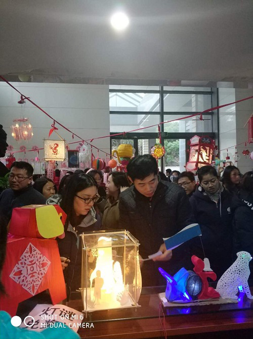 元宵佳節當日,神經所工會舉辦了元宵燈會展示評比暨趣味燈謎競猜的活動,新生命大樓的大廳里懸掛著由大家精心制作、形態各異的燈籠,寫著趣味燈謎的大紅紙貼在墻上,洋溢著一派節日喜慶的熱烈氣氛。