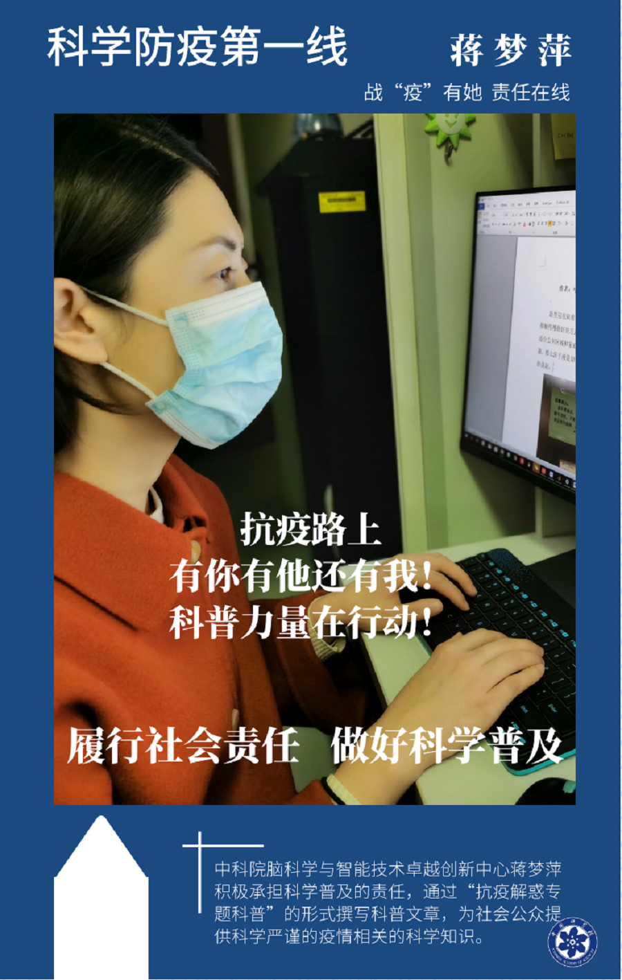 在第110個“三八婦女節”來臨之際,結合當前疫情防控形勢,腦智卓越中心婦委利用騰訊問卷的形式開展了“腦智麗人、花式防疫”線上展示活動,200多位中心女職工、女博后以照片和文字的形式,記錄大家響應國家號召抗擊新冠肺炎疫情宅家時,或者復工以后采用的各種防疫妙招。