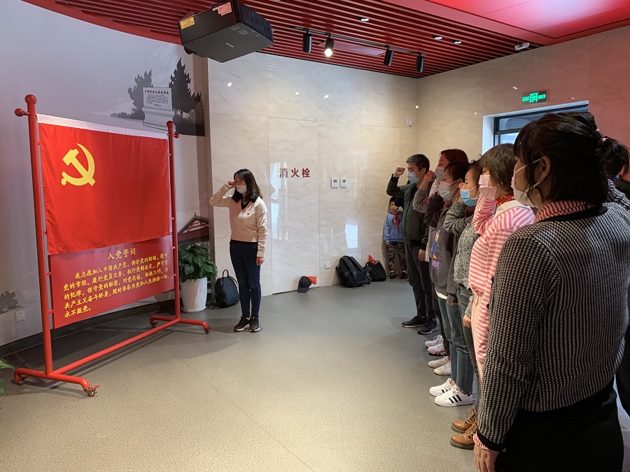 在我和國歌展廳,黨員們在支部書記王洋的帶領下,面向黨旗,集體重溫了入黨誓詞,進一步堅定了入黨的初心。