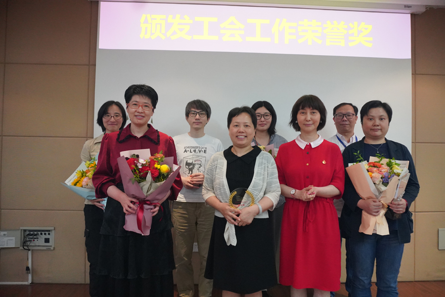 王燕為神經科學研究所第三屆工會委員頒發了榮譽獎杯。