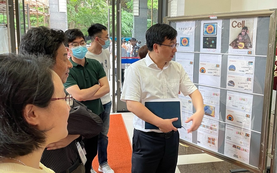 本次郵展由320大院的歷史、重大科技成果紀念郵票、院士簽名封等主題展區組成,黨員們隨著收藏者的講解,認真觀看了各類展品,細心體味一張張郵票、一只只信封背后的故事。郵展首先展示了320大院的發展歷史以及置身其中的科學家們在黨的領導下投身中國科技事業,走出了一條中國特色科技創新之路;通過展示克隆猴等重大科技成果的紀念郵票,結合郵票發行過程中“畫猴點睛”故事的講述,生動展示了各個科研領域、不同崗位的工作者在重大項目的攻關過程中眾志成城、矢志創新的工作畫卷;通過幾十年來數十位院士親筆簽名封上的寄語,生動、直觀地展示了老一輩科學家對科技創新、自立自強的堅持和追求,激勵大家傳承老科學家精神,弘揚新時代科學家精神,為實現祖國的高水平科技自立自強不懈奮斗。