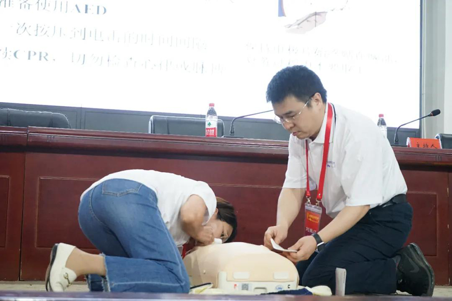 中南大學(xué)湘雅二醫(yī)院臨床技能中心主任李瑛教授為營(yíng)員們?cè)敿?xì)講解了心肺復(fù)蘇、傷口處理等急救知識(shí),劉振江副主任醫(yī)師與志愿者們進(jìn)行了現(xiàn)場(chǎng)演練,并對(duì)每個(gè)學(xué)員的急救細(xì)節(jié)逐一進(jìn)行了指導(dǎo)。
