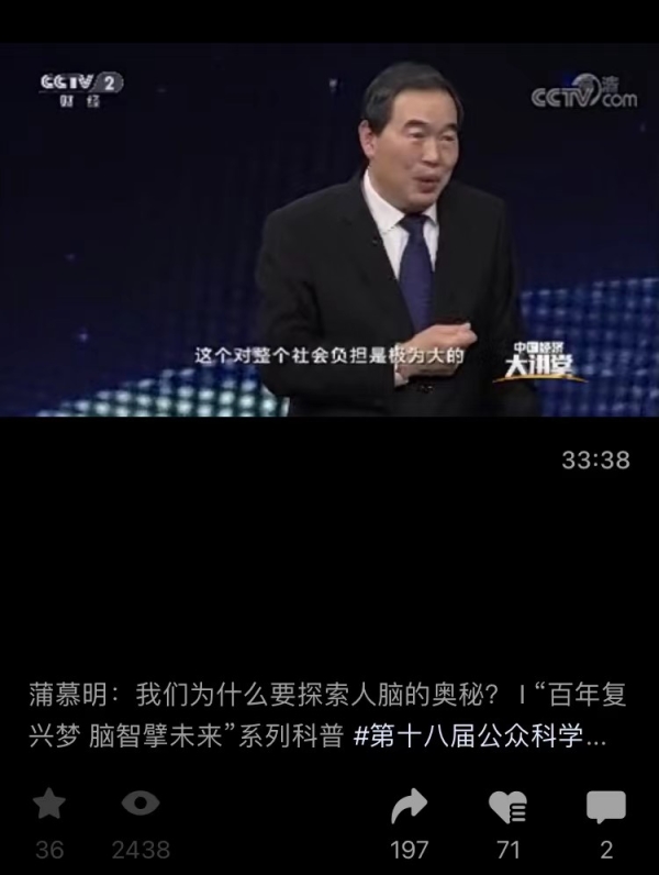 “科學家視角”通過官方視頻號“腦科學與智能技術”,為公眾呈現了蒲慕明院士的科普講座“我們為什么要探索人腦的奧秘”,詳細解讀了腦疾病是如何產生的,新的科研成果將如何更好地預防和治療腦疾病,未來腦科學與智能技術融合發展的方向等多個方面,效果不亞于現場傾聽。