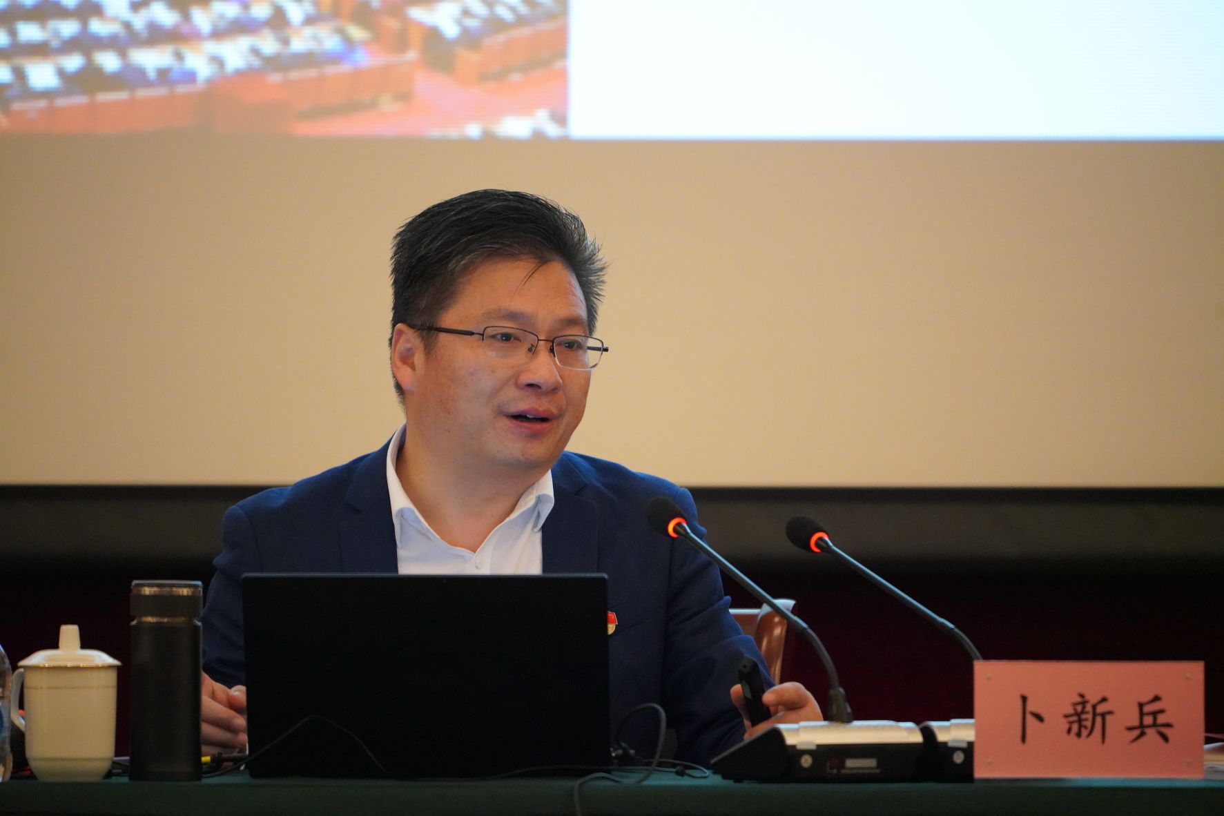 上海市委黨校馬克思主義學院精品課教師、上海市習近平新時代中國特色社會主義思想研究中心卜新兵研究員以《全面建設社會主義現代化國家的政治宣言和行動綱領——黨的二十大精神解讀》為題, 以“如何學懂弄通悟透做實黨的二十大精神”為重點,從“深刻理解黨的二十大的時代背景與重大意義”、“全面把握二十大報告的戰略部署與重點內容”、“不斷增強學習貫徹二十大精神的思想自覺與行動自覺”三方面,著重講解了二十大報告的總體思路、邏輯架構、重點內容、重大論斷與創新觀點,幫助大家梳理了學習二十大精神的思路方法,闡述了在二十大精神指導下上海加快建設具有世界影響力的社會主義現代化國際大都市、尤其是加快科技創新能力建設的目標愿景。卜新兵運用大量的歷史事實和熱門時事,授課風格新穎獨特,引人入勝,為中心廣大科研人員深入學習貫徹黨的二十大精神提供了指導。