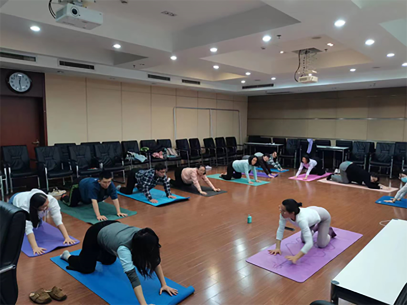通過自身體位訓練,有效糾正了部分職工身體姿態長期存在的問題,塑造了形體,增強了力量,關節和肌肉的僵硬程度得到顯著改善,身體柔韌性普遍得到提升。伴隨著輕松愉悅的音樂,職工們通過呼吸控制練習,緩解工作生活中的壓力與焦慮,身心獲得平靜和放松。