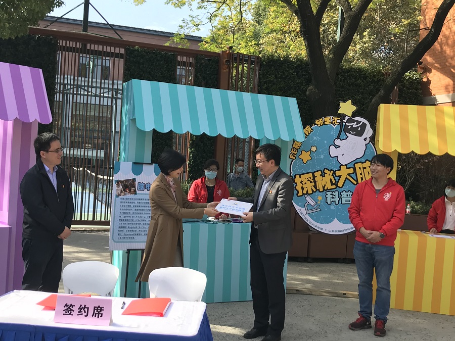 66梧桐院-鄰里匯“探秘大腦”科普市集啟動儀式上,腦智卓越中心黨委副書記兼紀委書記王茂華與天平街道黨工委書記高路簽署了《徐匯區(qū)區(qū)域黨建促進會天平分會結(jié)對共建協(xié)議書》,街道給中心贈送了“天平街道新時代文明實踐點”銘牌。兩家單位將從黨建共建、群團共建、人才共建、文明共建、科普共建等五大板塊深挖合作,充分利用自身資源優(yōu)勢,緊密結(jié)合社區(qū)建設的實際,做到精神文明建設上相互促進,物質(zhì)文明建設上相互幫助,助力社區(qū)科普教育常態(tài)化。