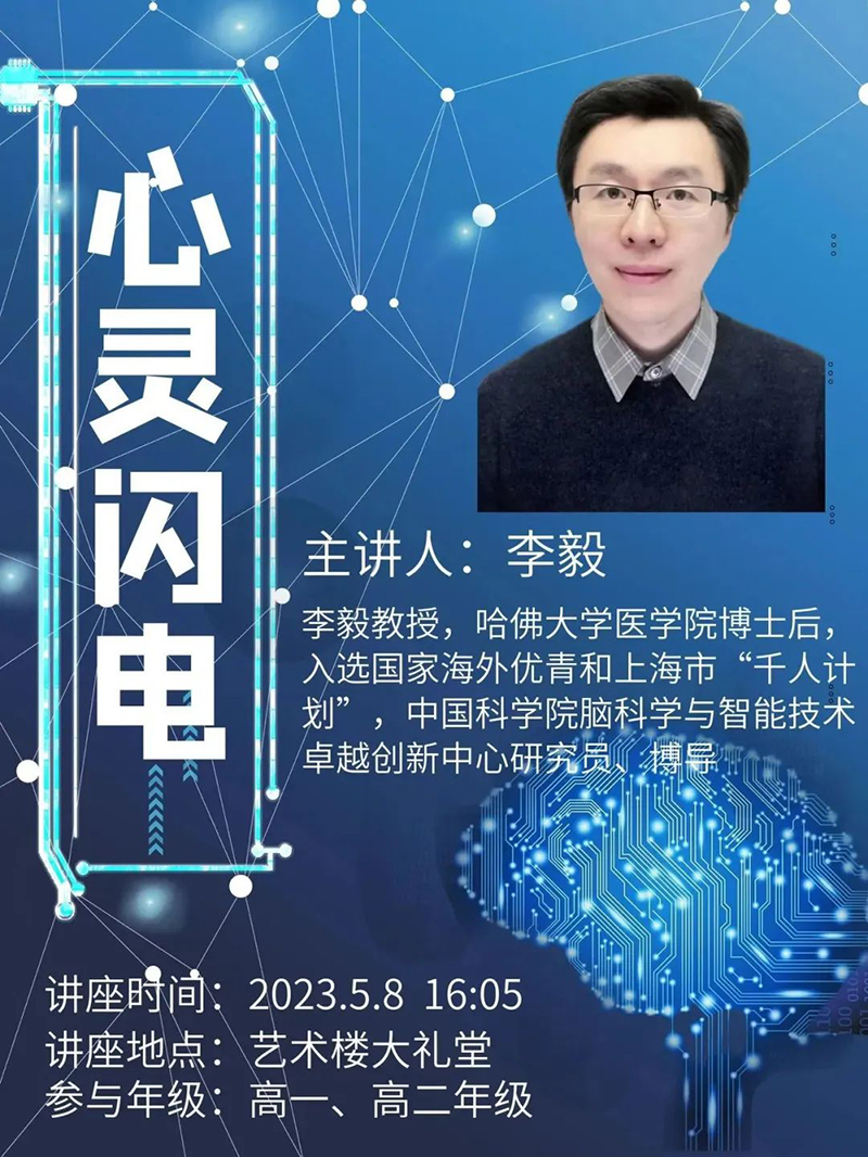 5月8日下午,中國科學院李毅教授來我校開設主題為《心靈閃電》的講座。李教授博士畢業于東南大學,后于哈佛大學醫學院完成博士后研究。李教授科研經歷豐富,并取得諸多榮譽和成就,現任中國科學院腦科學與智能技術卓越創新中心研究員、博導,中樞神經損傷與功能重建研究組長。