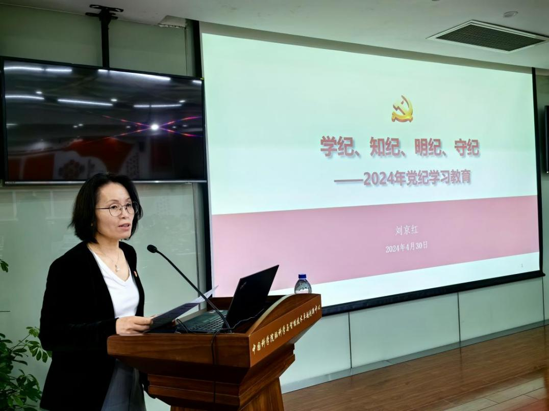 劉京紅傳達了中共中央辦公廳《關于在全黨開展黨紀學習教育的通知》和中央黨的建設工作領導小組會議精神。她指出,在全黨開展黨紀學習教育,是黨中央作出的重大決策,是今年黨建工作的一項重要政治任務,是加強黨的紀律建設、推動全面從嚴治黨向縱深發展的重要舉措。習近平總書記多次就開展黨紀學習教育發表重要講話、作出重要指示,為開展黨紀學習教育提供了重要遵循。她表示,中心黨委成立了黨紀學習教育工作專班,統籌推進黨紀教育各項工作,加強對黨支部的指導把關,同時,中心黨委主要負責同志要切實履行第一責任人責任,領導班子其他成員要認真履行“一崗雙責”,各級領導班子和黨員領導干部要帶頭學習,推動黨員干部高質量完成黨紀學習教育任務。