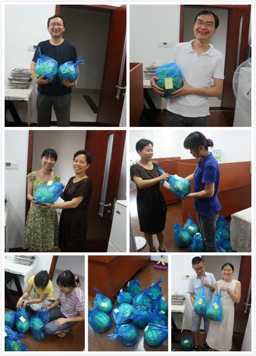 五月中旬,在生科院工會組織下,我所部分職工子女參加了“迎六一綠色科普親子活動”,在松江的試驗田里,小朋友們親手種下了一棵棵的西瓜秧苗。之后,很多孩子經(jīng)常在家里念叨西瓜苗長大了嗎?什么時候結(jié)瓜呀?在孩子們的期盼下,8月14日下午,孩子們終于等來了好消息,家長們開心地領(lǐng)取了孩子們的勞動果實,有的還特地與同事們分享了這份收獲的喜悅。