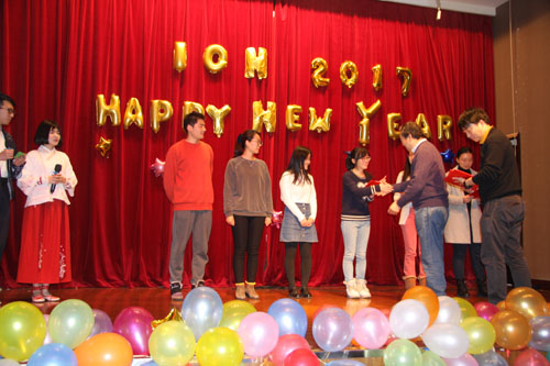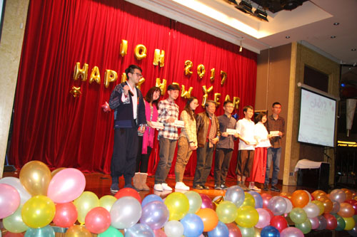 開場前,神經所所長蒲慕明院士為獲得2016年年會的6位優秀報告人頒發了證書和獎品。聯歡會在熱情洋溢、青春活力的舞蹈《Watch Me Work》和全場師生的熱情歡呼聲中拉開了序幕;一群平均年齡70多歲、精神矍鑠的老人應邀為大家帶來喜氣洋洋的歡樂腰鼓,掀起了全場的一波高潮;慷慨激昂的《改變自己》讓大家熱血沸騰起來;充滿濃郁江南韻味的長笛《姑蘇行》,讓大家仿佛漫步在清秀恬美的江南水鄉;別出心裁的無厘頭《比wu招親》充分體現了90后的多才多藝;自編自導的小品《One Day in Lab》深刻演繹了神經所的科研生活;游戲過程中科學領域的模式動物被師生們演繹得惟妙惟肖、花樣百出;新進所的6位PI自編的歌詞中對科研人生酸甜苦辣的描述不斷激起大家的共鳴;行政人員和管家們精心排練的俄羅斯舞蹈《春天的華爾茲》,清麗脫俗、婀娜多姿的舞步,引來掌聲陣陣,叫好連連,將晚會的氣氛推向了又一高潮;深情款款的《告白氣球》和現場的真情流露,讓觀眾已然分不清戲的真假;創意新穎的相聲《鈴鐺譜》,通過輕松幽默的語言,讓大家腦補了各種鈴鐺的名字和獨特意義,增長了不少見識;聯歡會在充滿青春朝氣的大合唱中劃下完美的句號。