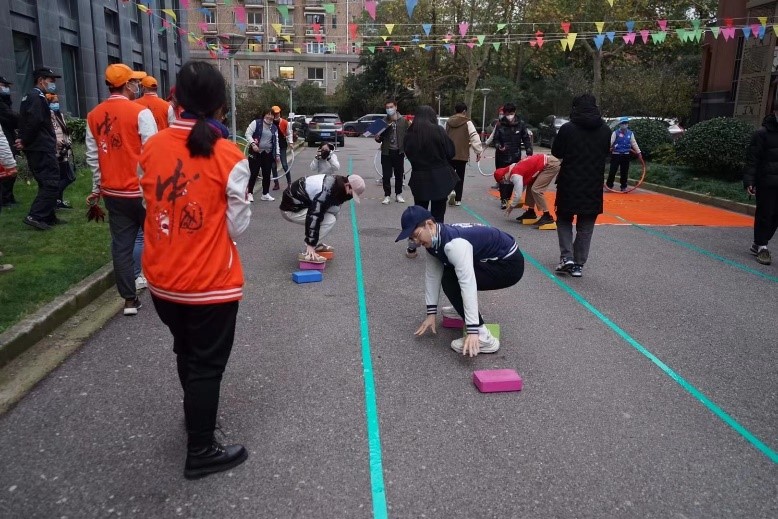 此次運動會分兩個環節,第一環節為頗具挑戰的“紅色知識”搶答環節,題目聚焦黨的二十大報告的主要內容,參賽代表每每搶答成功時,團隊就會全員呼喚雀躍。第二個趣味運動環節,特邀上海體育學院專業人員擔任裁判,團隊成員分工依次完成指壓板跳繩、俯臥撐、踢毽子、瑜伽磚十米過河、呼啦圈十米前進。在兩個多小時的活動中,運動員奮勇爭先,樂在其中;裁判員客觀認真,公正裁決;工作人員盡心盡力,熱情服務。活動中,加油聲與歡笑聲灑滿整個賽場。
