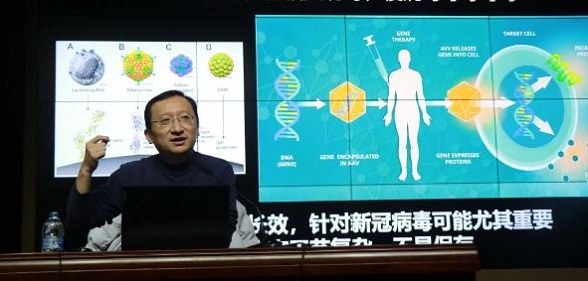 仇子龍首先以特殊之年的新冠疫情談起,以“基因——mRNA——蛋白質(zhì)”為主線,向同學(xué)們生動有趣的講述了基因工程生產(chǎn)的藥物,從胰島素到抗體藥。又通過疫苗研發(fā)的“前世與今生”,介紹進(jìn)入臨床三期的各類新冠疫苗,介紹了病毒是人類可怕的敵人,也有些病毒正被“馴化”為人類的朋友,作為疫苗或藥物的載體等。仇子龍認(rèn)為,隨著生命科學(xué)的蓬勃發(fā)展,藥物正在從化合物,蛋白質(zhì)到DNA不斷演化,同學(xué)們也要客觀看待病毒與人類的關(guān)系,在病毒和疫情面前秉持科學(xué)嚴(yán)謹(jǐn)?shù)膽B(tài)度,相信科學(xué),勇于創(chuàng)新。